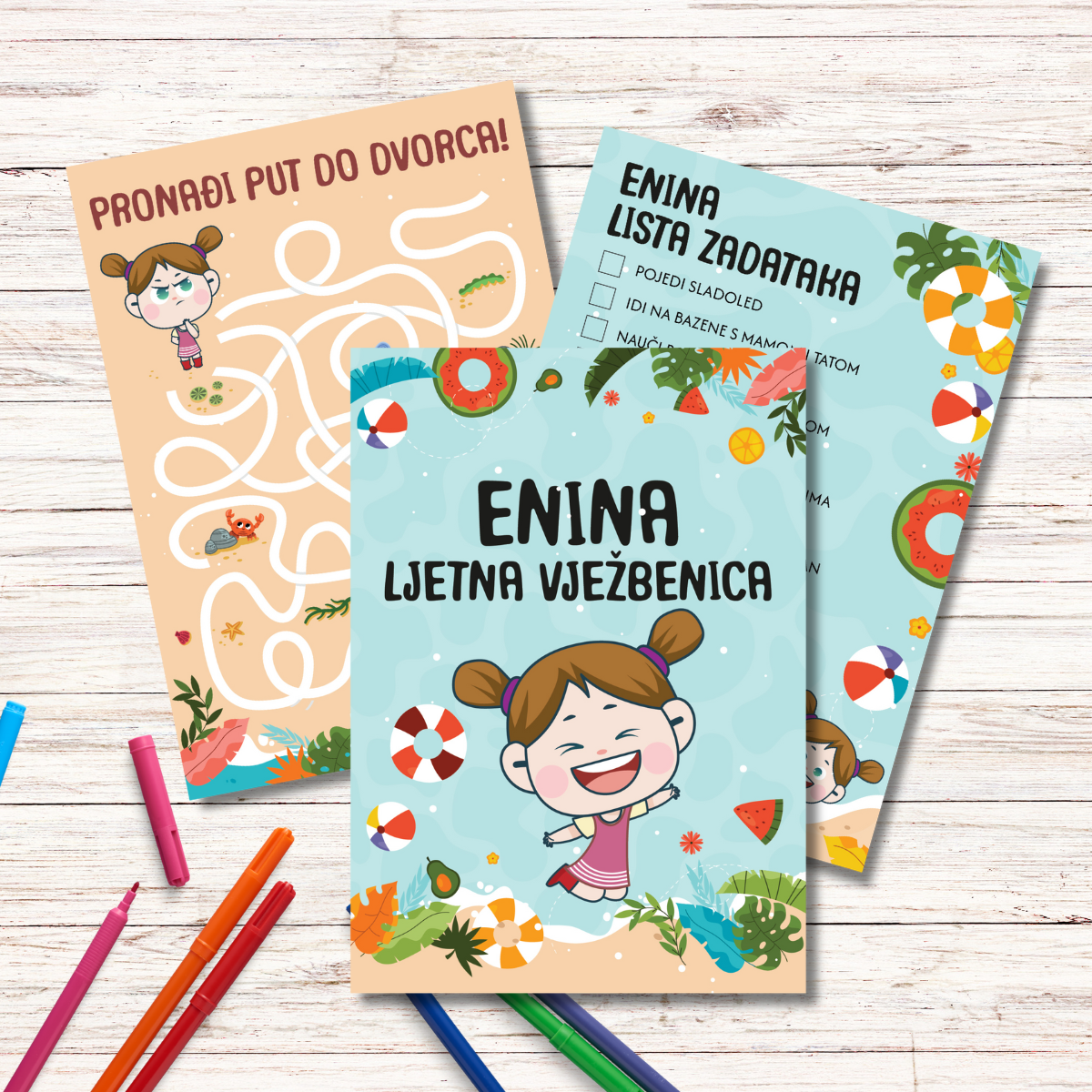 Po želji je moguće dodati do 5 dodatnih listova (ukupno 10 stranica) s personaliziranim zadacima, imenom djeteta ili prilagođenim motivima.